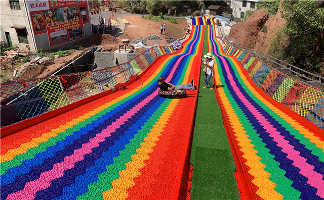 “衡山花果山景区七彩滑道全长约127米,布设3条滑道,游客可单人体验,也可多人互动体验,参与性强,是广大游客假期休闲的理想运动场所。”衡山花果山景区总经理谭灿辉介绍说,七彩滑道是在原有生态景观上,依山而建,在观赏经济的基础上,融入体验旅游,将其打造成为衡山花果山景区的第二张旅游名片。