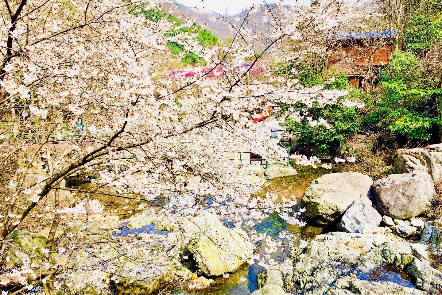 除了热情奔放的郁金香花海之外,早春时节的龙津溪地还被漫山遍野的野樱花覆盖。一个山头连着一个山头,随风飘落摇曳下溪流。鲜花的海洋、花香的世界,此时的龙津溪地堪称“大别山脉最美溪谷”!