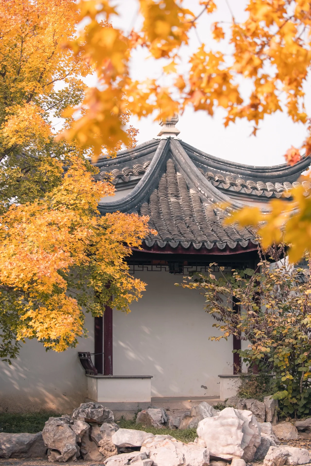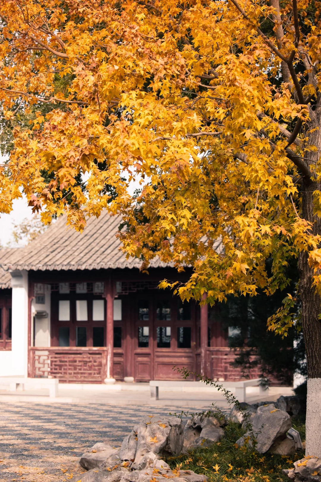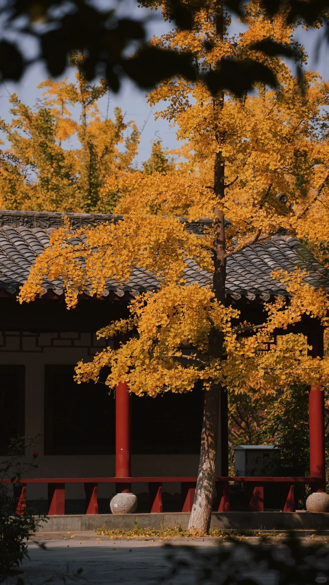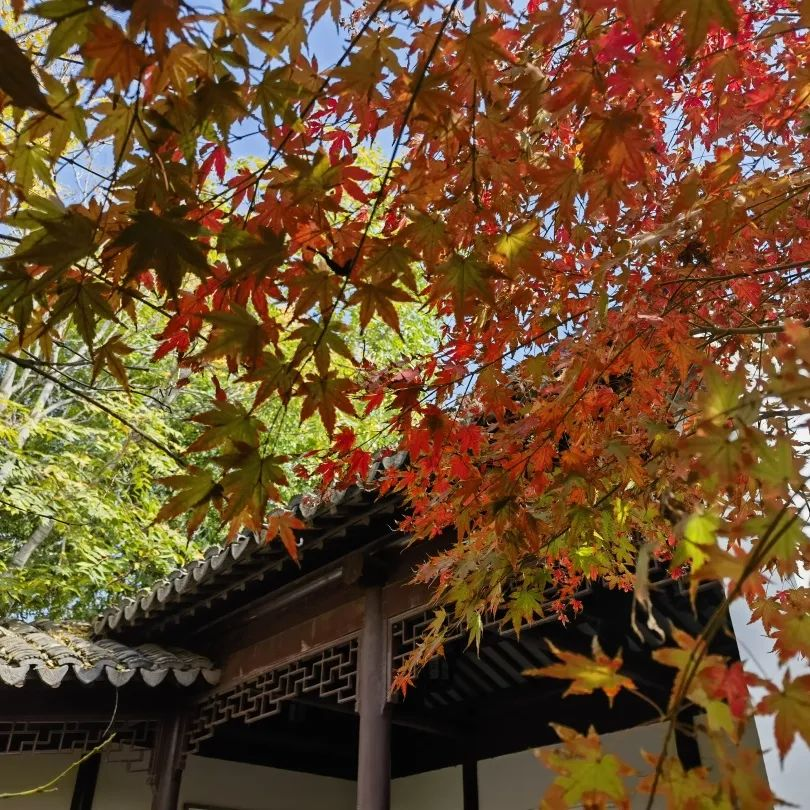 银杏、枫叶与亭台楼阁