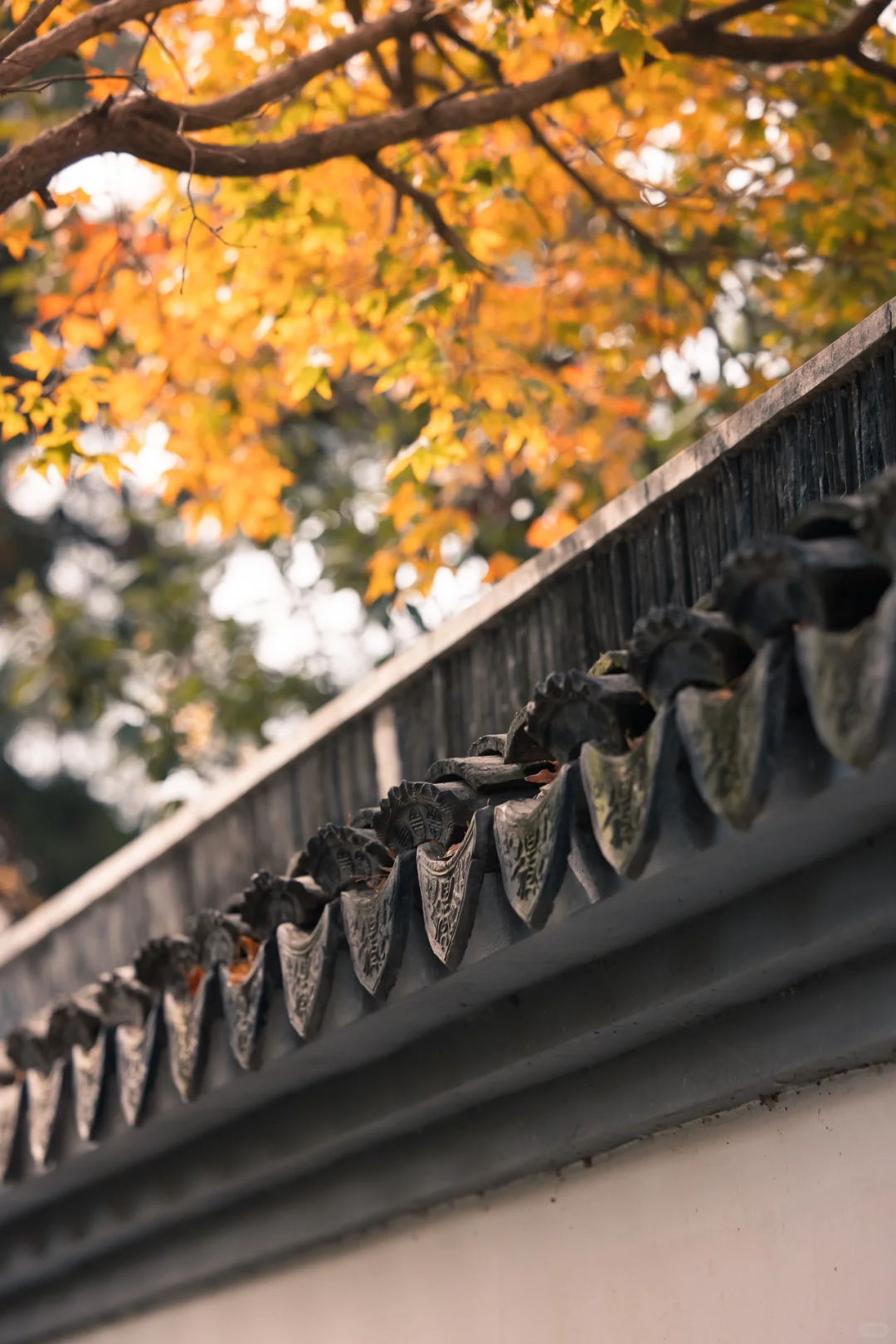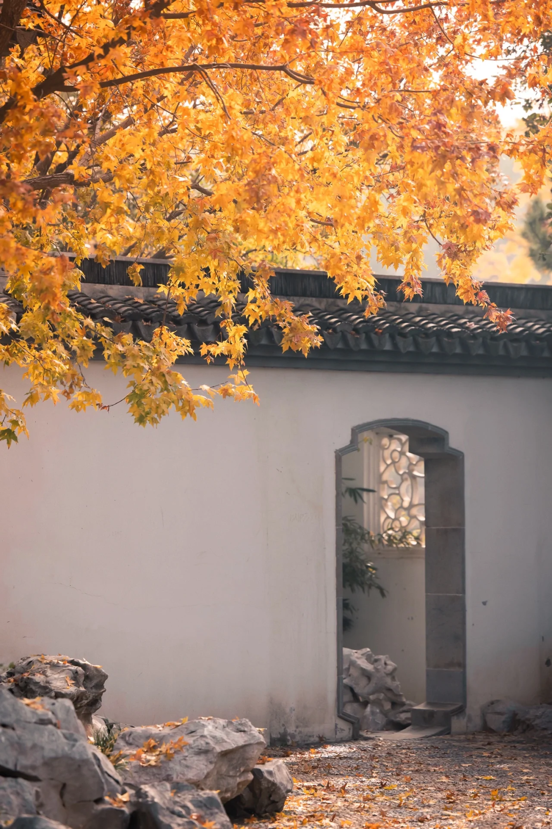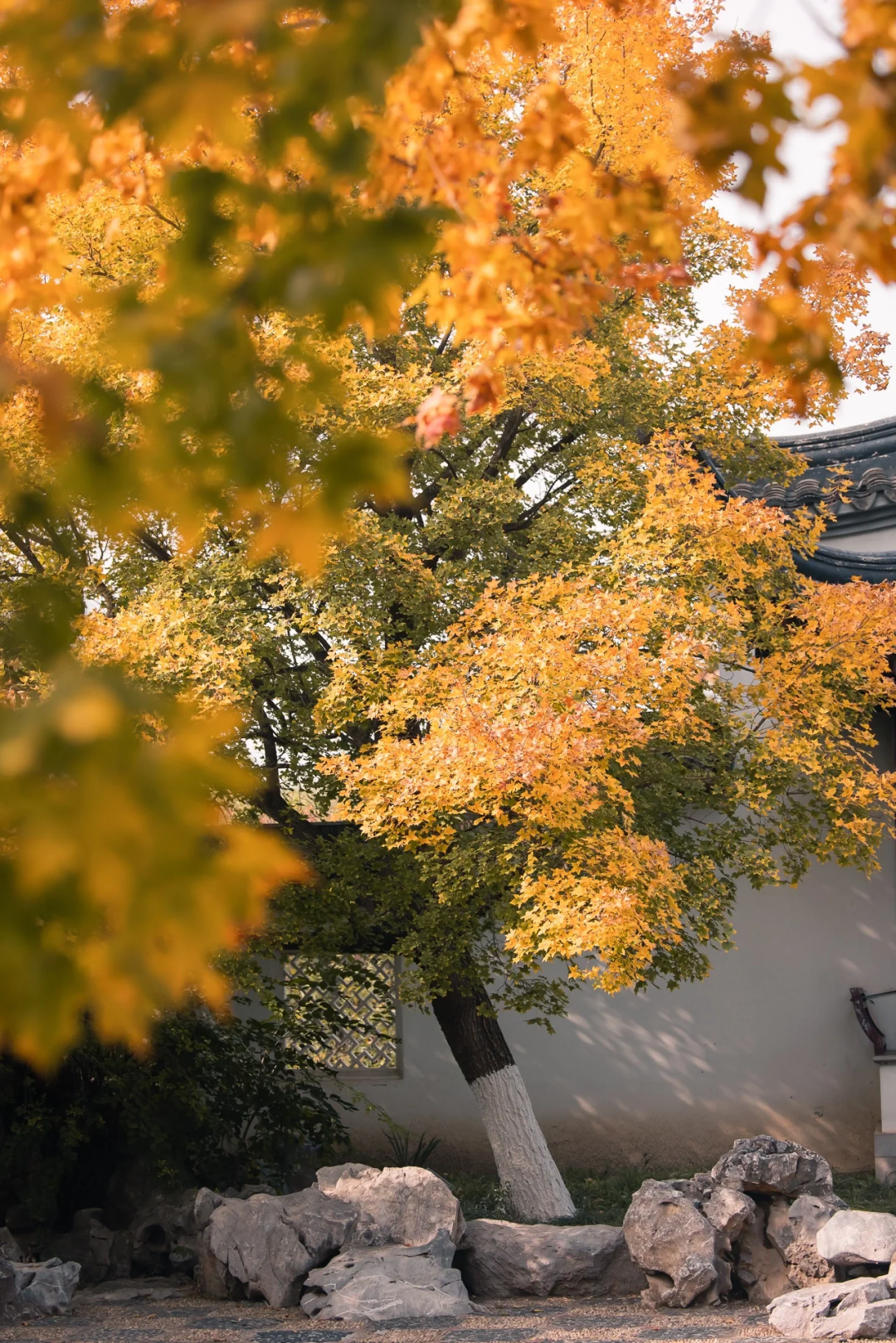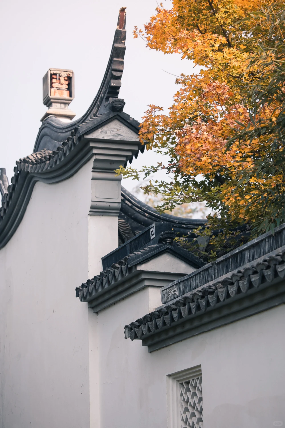 银杏、枫叶与亭台楼阁