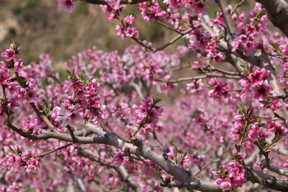 漫山遍野的桃花粉红如霞、姿态万千
