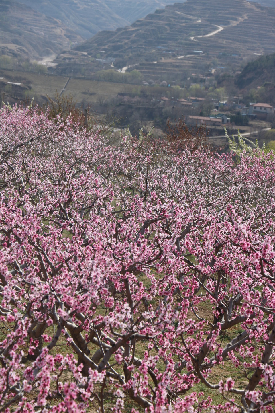 在二沟村的几百亩桃花园里