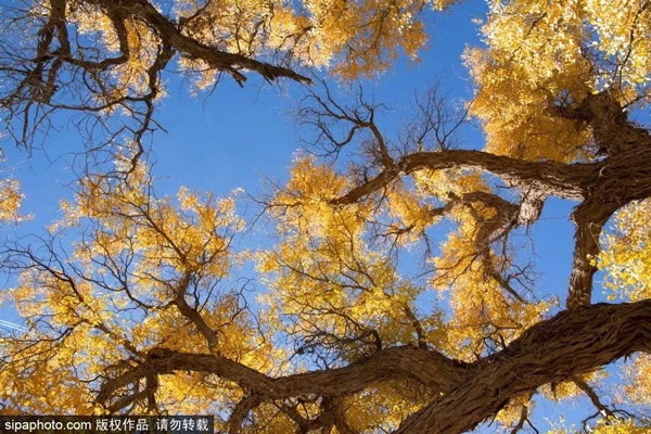 每年到了秋天最惊艳的美景就是额济纳胡杨林~一眼望去,阳光下金色的树叶衬着湛蓝的天空于风中婆娑起舞,强烈的反差,鲜明的影调,亮丽的色彩,足以令任何语言文字显得苍白无力~