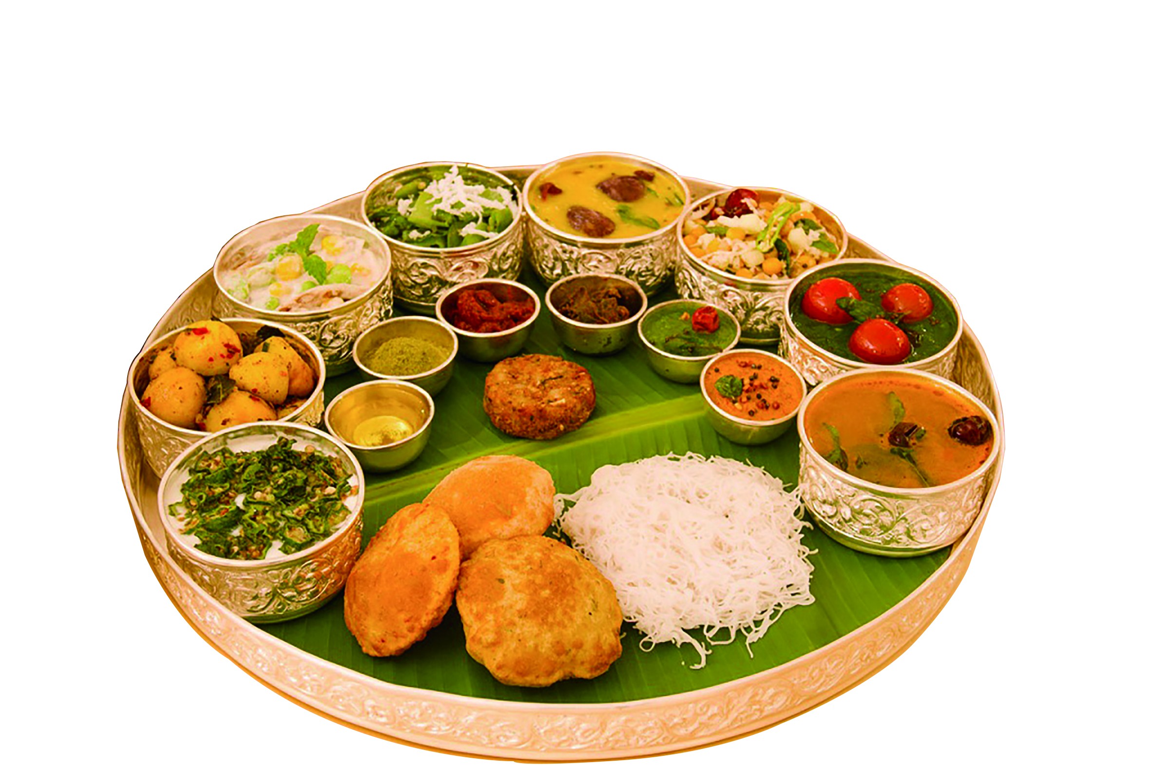 实际上,印餐中的美食并不追求食材本身的奢华,即使御宴也是如此,讲究的是烹制过程和调料的繁杂变化。印度享誉世界的咖喱酱料,其实是调味料的总称,印度人习惯称之为玛萨拉。在印度有“万物皆可玛萨拉”的说法,许多印度人即使吃冰淇淋、西瓜或烤红薯的时候,也要配上玛萨拉。日常生活中,人们可以在商店购买现成配好的玛萨拉粉用来烹饪。但上档次的酒店,往往用自家的香料配制玛萨拉,每个知名的厨师也都有自己独特的玛萨拉配方。所以,尽管许多印度菜看起来都是各种颜色的“菜糊糊”,但其内涵和口味却是不相同的,糊糊的背后大有学问。