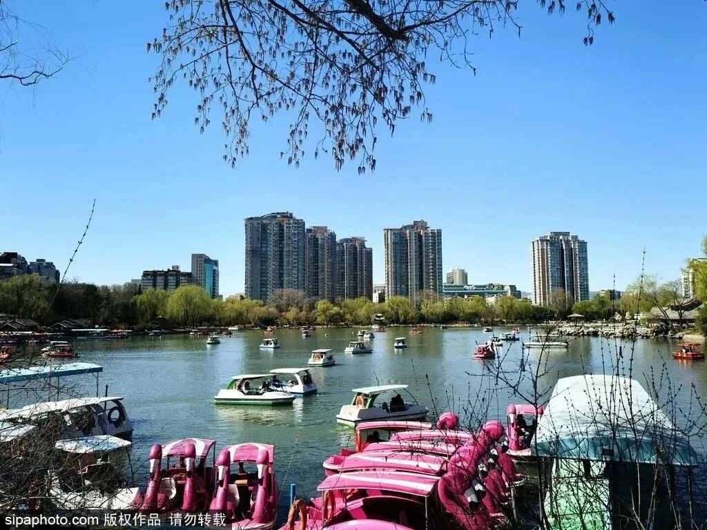 春日的陶然亭公园花红柳绿,和家人朋友一起泛舟湖上,赏两岸美景吧!