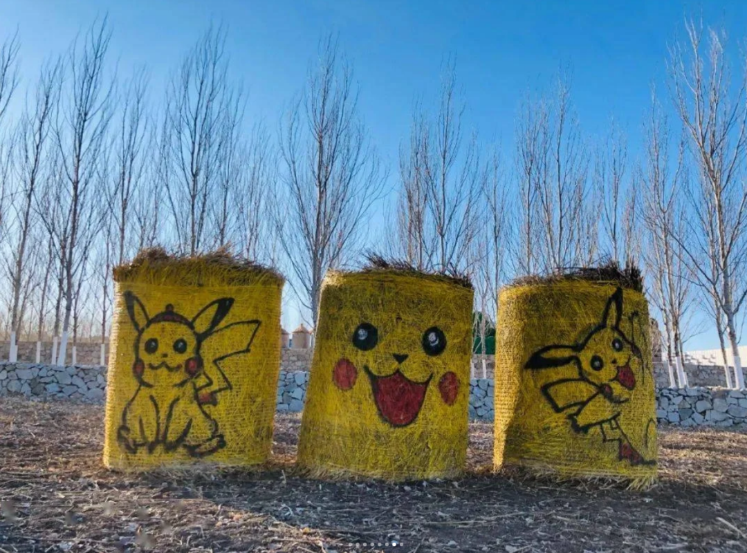 快看!许多草垛上画上了各种涂鸦