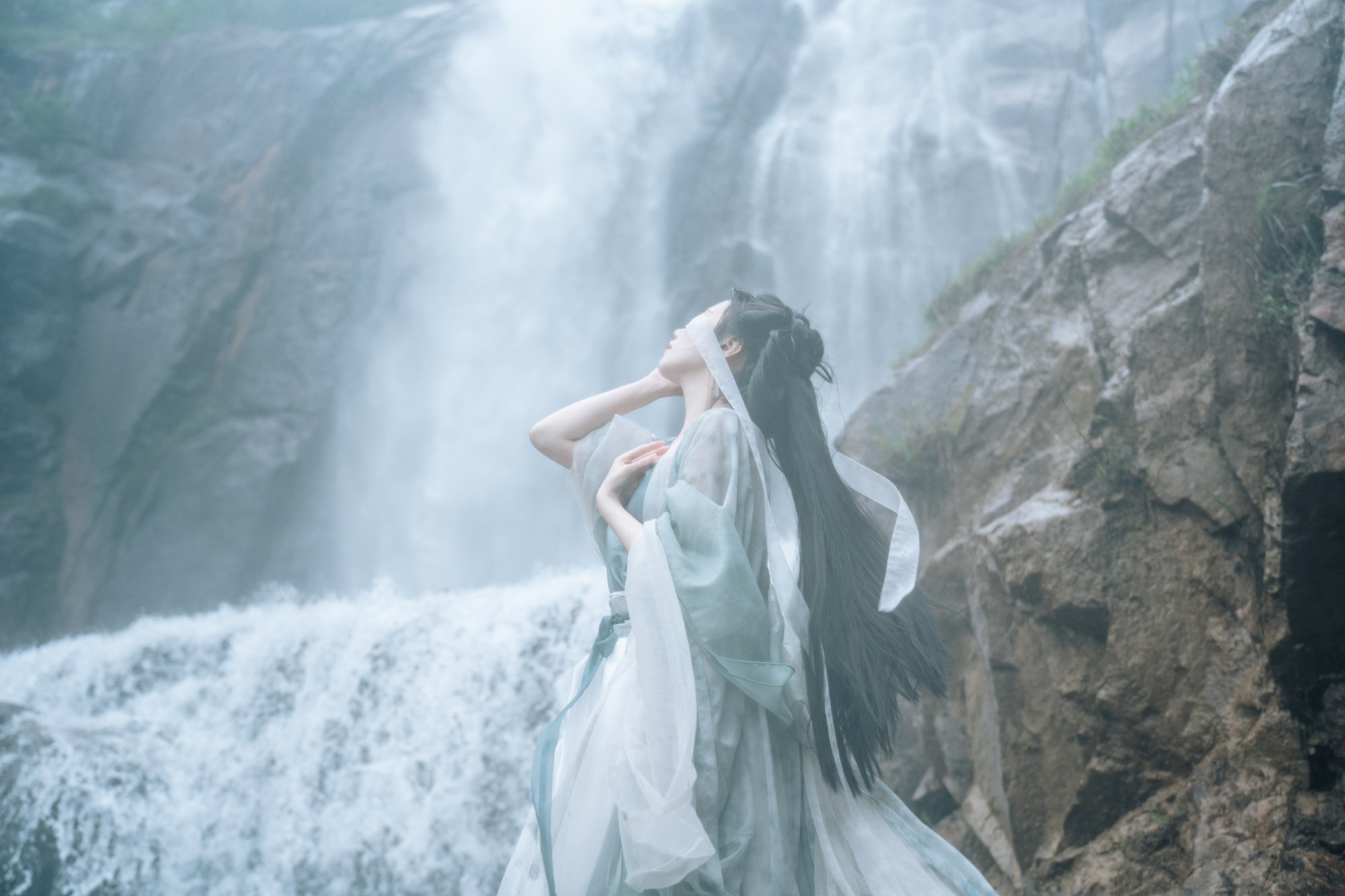 远看,9级瀑布宛如一条白色玉带,倒泻于群山玉潭中,水声如雷,气势若虹,震天动地,撼人心魄,又像千万颗玉珠崩落在山川间,激起万朵水花。