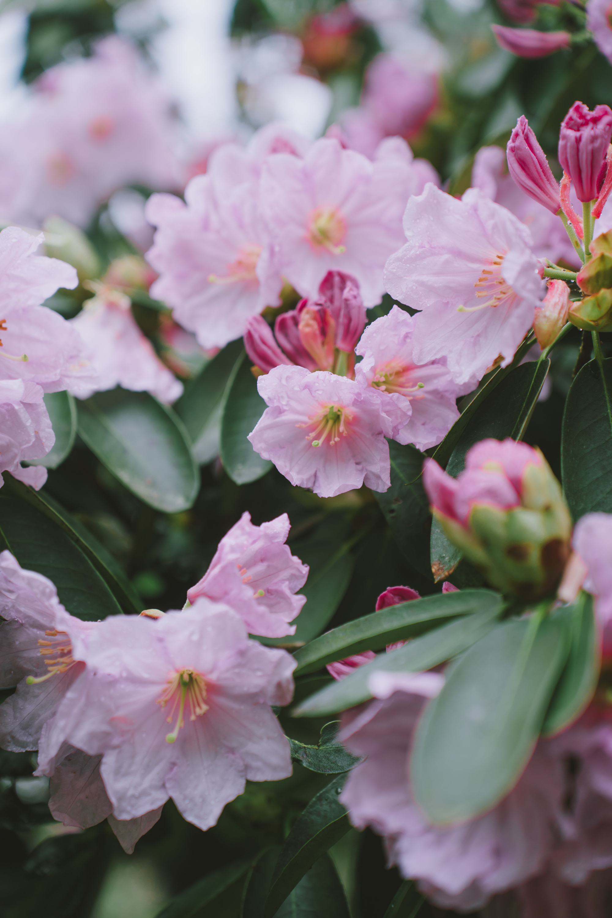 眼下,是到天台山看杜鹃的最佳时节。华顶的云锦杜鹃,自去年7月孕蕾至今日花开,足足“十月怀胎”。杜鹃林内,紫红、玫红、粉红、粉白之花竞相盛放,十数朵小花组成一朵大如碗口的花球,一树千花,似牡丹、似芍药、似芙蓉,树之古、面之广、花之胜,世之罕见。
