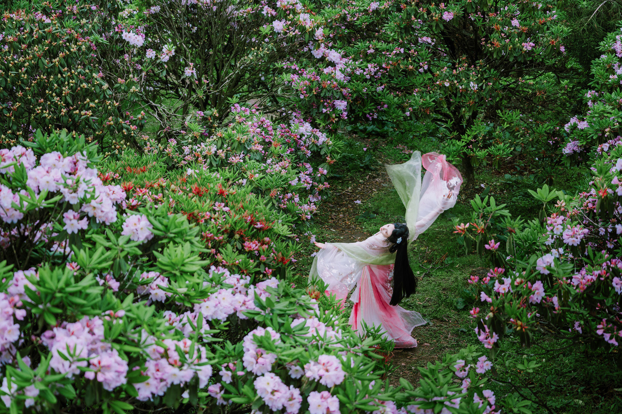 千米高山,千年杜鹃,加上盛开的千亩花海,构成了一幅美丽的春日画卷。