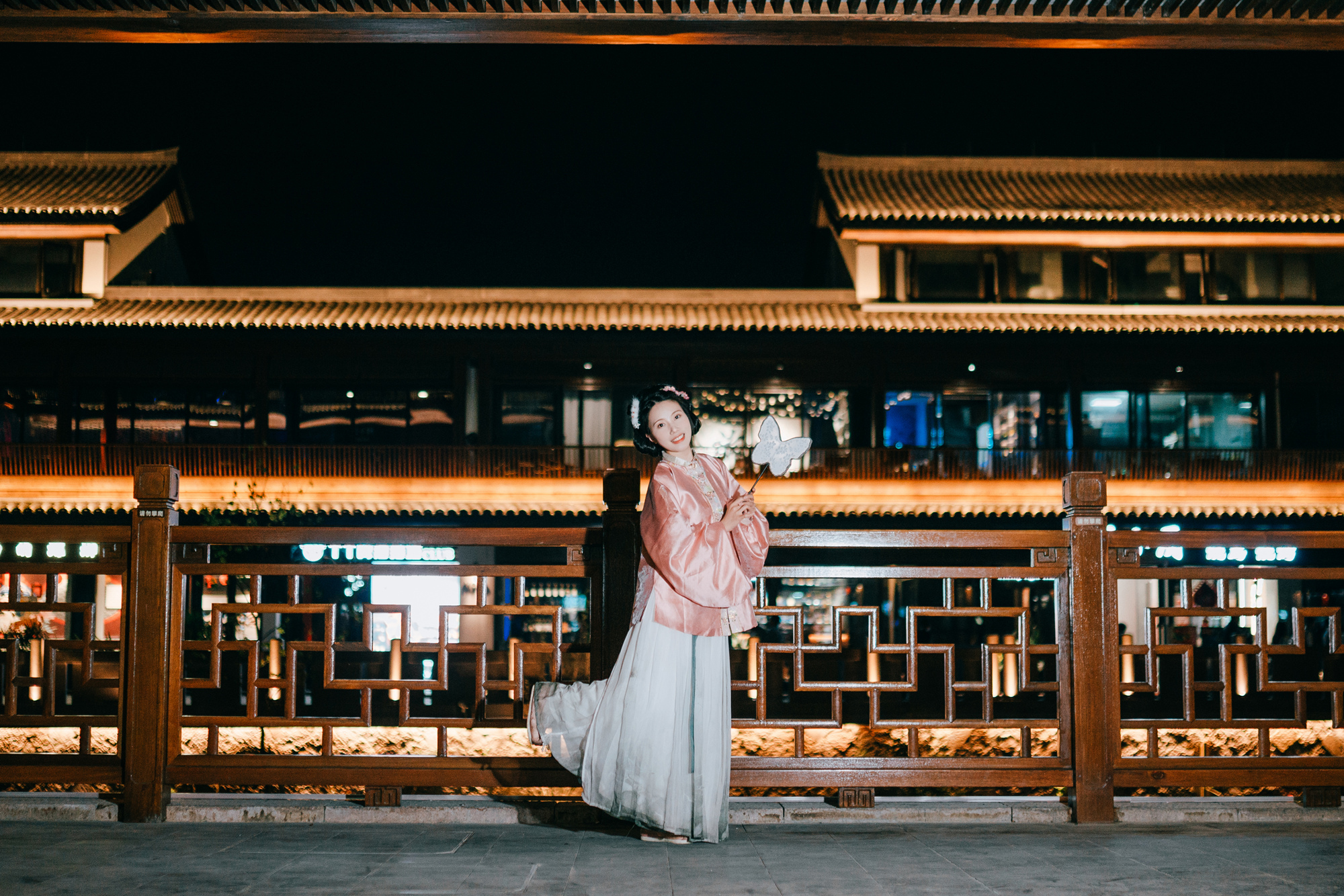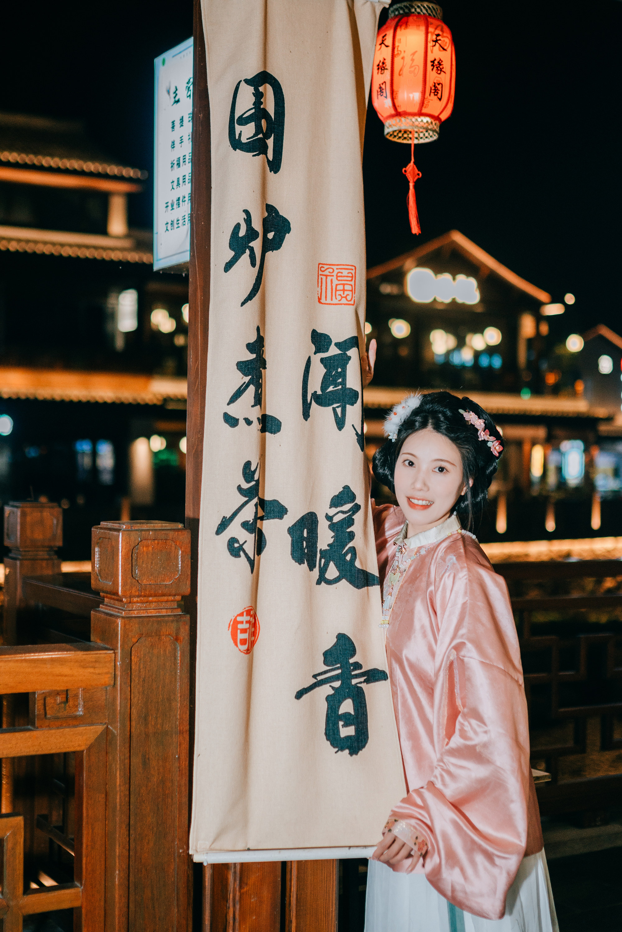 夜幕降临,华灯初上。赭溪老街灯火璀璨,行人络绎不绝。着汉服的游人拍照打卡,娓娓动听的越剧戏腔在老街古巷里飘扬……